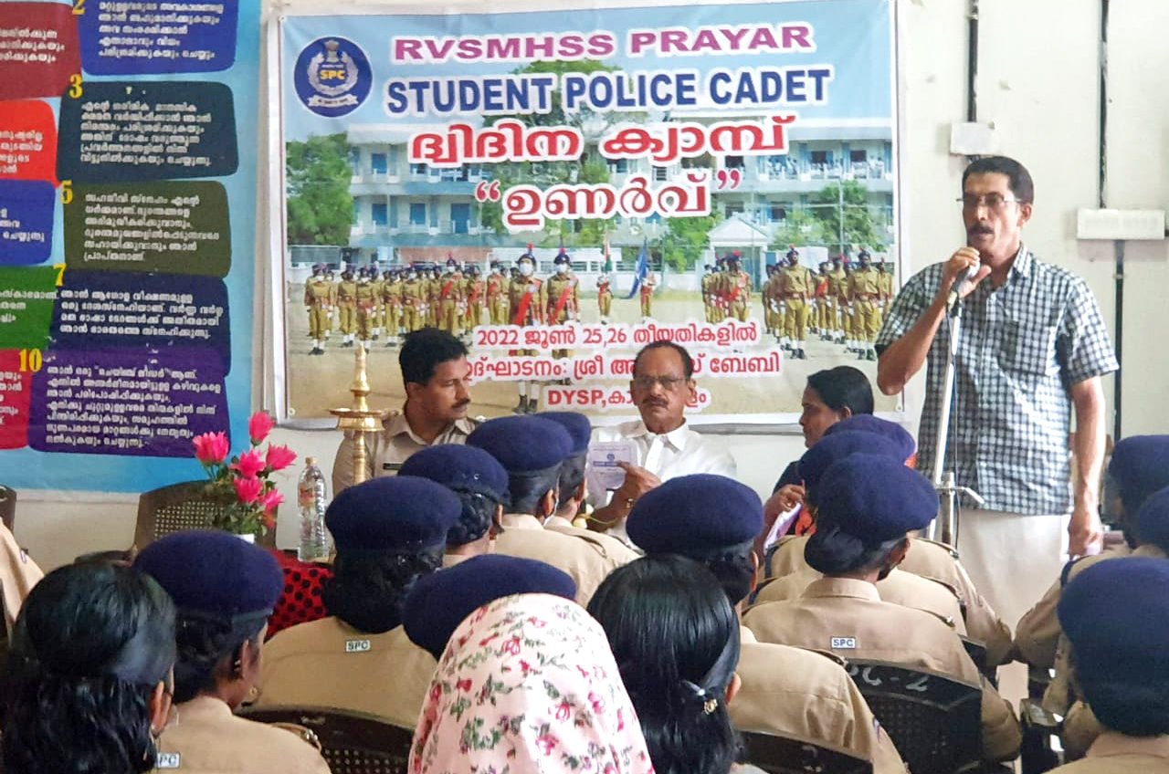 The two-day camp of SPC Unit, named ‘Unarvu’, concluded by the evening of Sunday, the 26th of June 2022. Mr. Alex Baby, Deputy Superintendent of Police, inaugurated the camp on Saturday morning. Prof. K Krishna Pillai (School Manager), Smt. P Maya (Headmistress), Sri. Harimohan Kumar (PTA President) and Sri. Nias (Sub Divisional Nodal Officer) were present at the inaugural function.